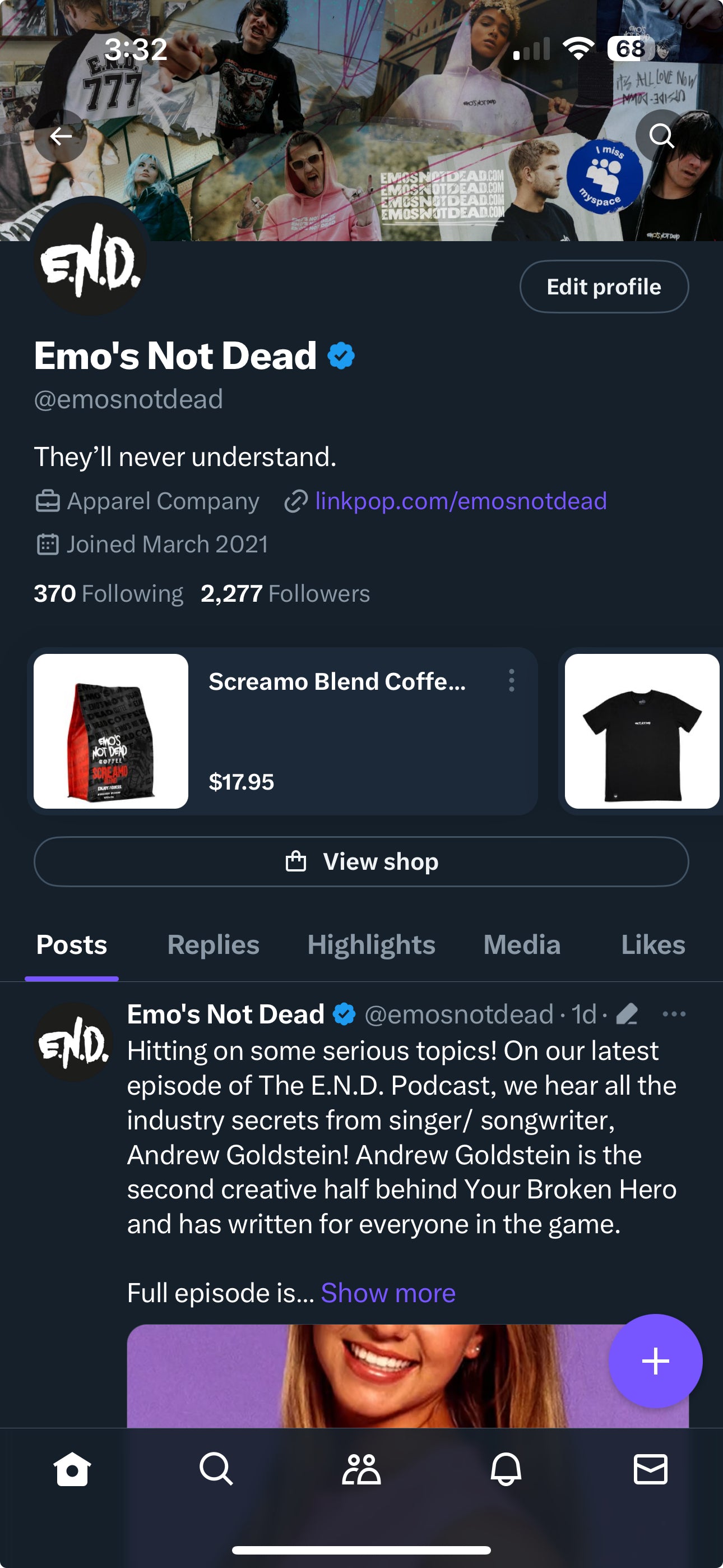 - 80K+ new followers in the past 12 months and has been a pillar of content for the emo communities culture